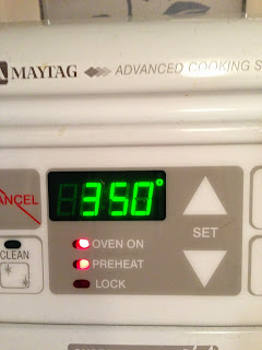Pre-heat oven to 350 degrees. This means, let your oven get hot before using. Some ovens have a buzzer which will let you know when it is at the temperature selected.