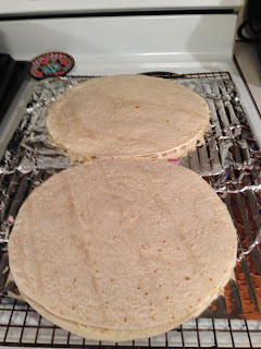 Place 1 or 2 tortillas on a baking sheet of choice. Covering with foil is totally optional.